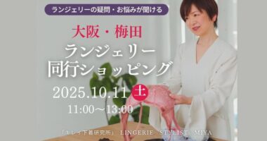 ランジェリー同行ショッピングで新しい自分に出会いませんか?今月は大阪・梅田でランジェリー同行ショッピングを開催します8…