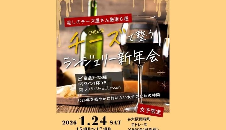 【内容】 中村さん厳選チーズ8種/ワイン1杯/ランジェリーミニ講座